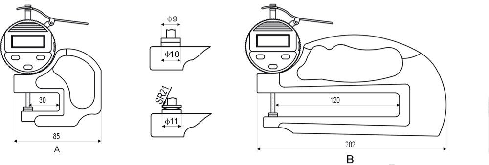 Dikte meter 0-10mm vorm B, projectie 120mm