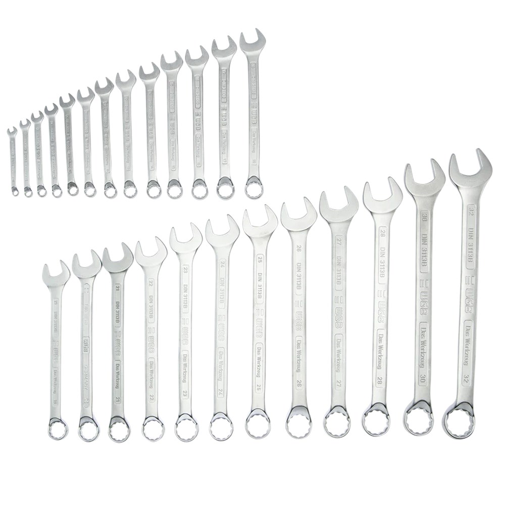 - 25x Ring-steeksleutels 220: 6 - 7 - 8 - 9 - 10 - 11 - 12 - 13 - 14 - 15 - 16 - 17 - 18 - 19 - 20 - 21 - 22 - 23 - 24 - 25 - 26 - 27 - 28 - 30 - 32mm