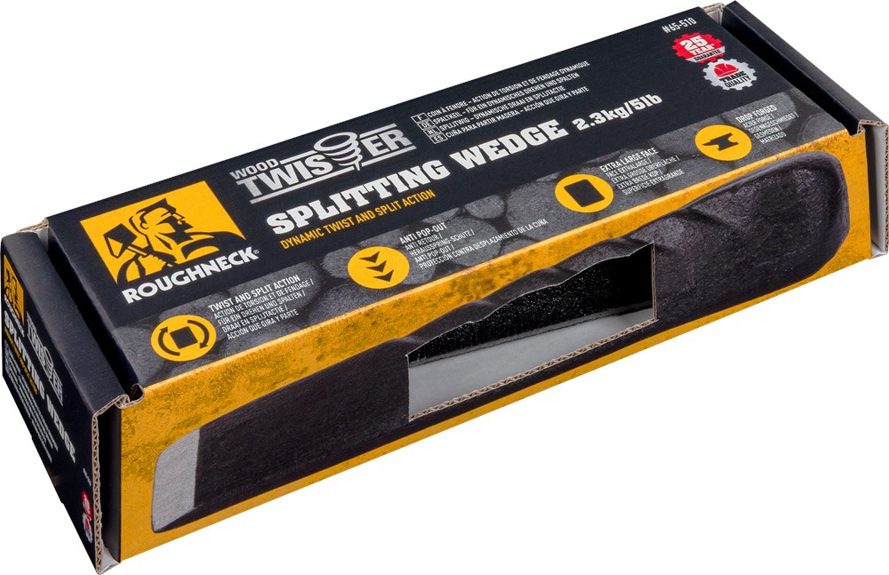 De Roughneck Wood Twister splijtwig zorgt voor een dynamische draai- en splijtbeweging, waardoor hij ideaal is voor grotere houtblokken.Hij is gesmeed, gehard en getemperd en voorzien van een extra groot bolvormig slagvlak voor een gecentreerde en efficiënte slag, en grijpinkepingen om te voorkomen dat de houtblok eruit springt.