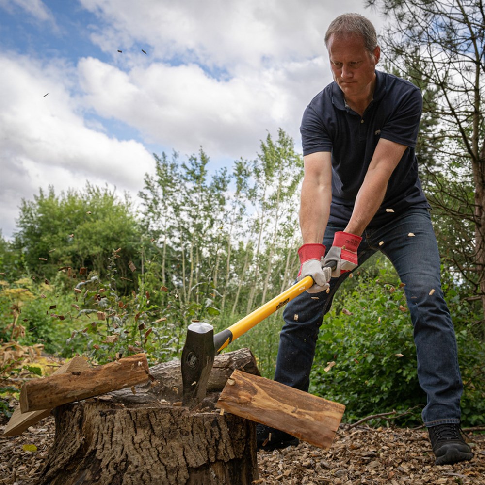 De Roughneck kloofbijl heeft een dubbele wigvormige kop die is ontworpen om de kloofefficiëntie te verhogen en vastlopen te voorkomen.