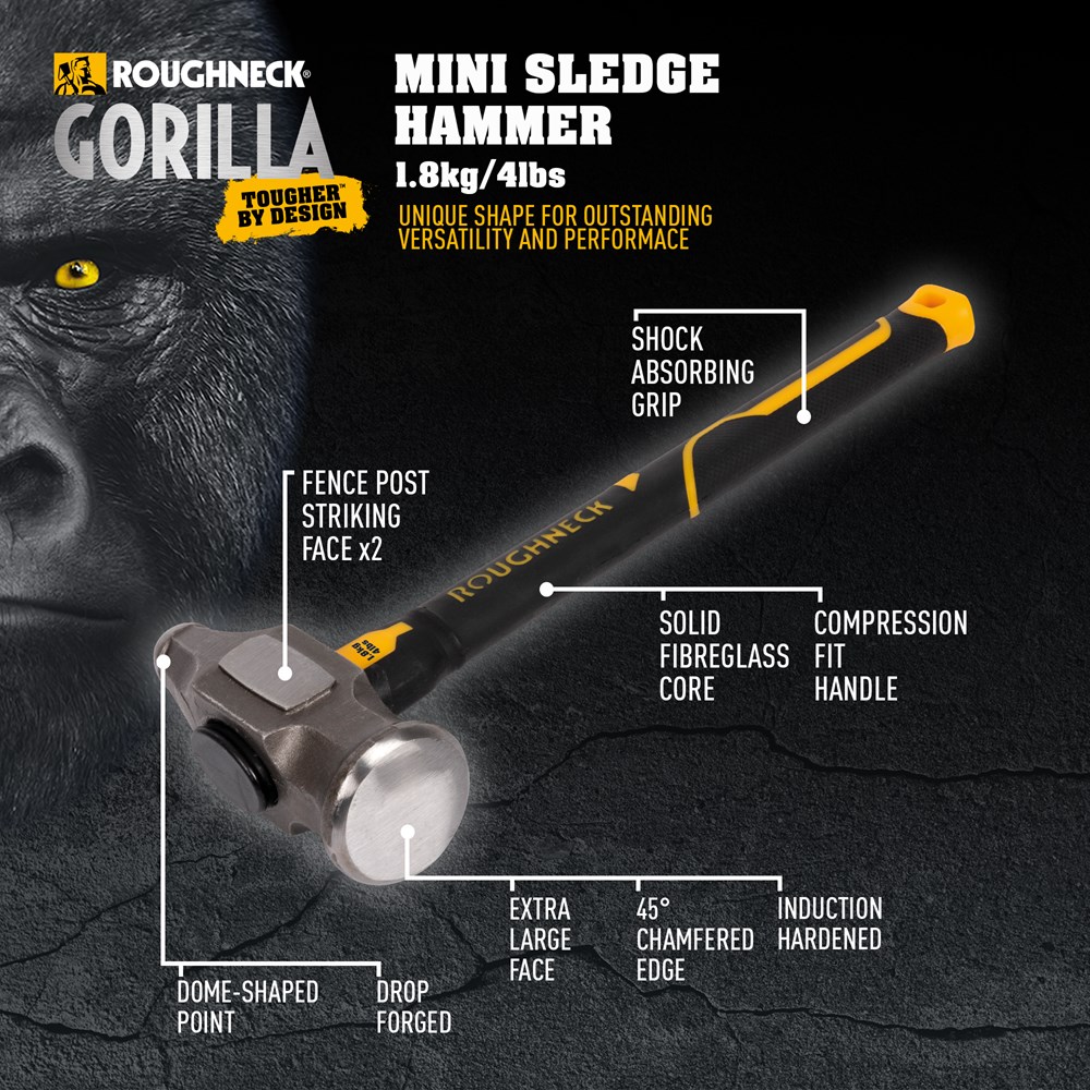 Roughneck Gorilla Mini Sledge Hammers hebben een unieke vorm voor uitstekende veelzijdigheid en prestaties.