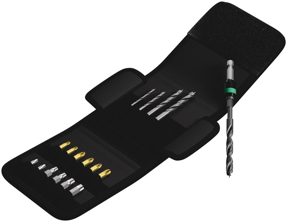 18-delige houtspiraalboor-bit en bit-set. Hoogwaardige metaalspiraalboorbits voor het nauwkeurig en scheurvrij boren in zachthout, hardhout en gecoate plaatmaterialen. Gemaakt van HSS-staal. Een nauwgezet afgestemde materiaalelasticiteit zorgt voor hoge standtijden. Zeer goede rondloopnauwkeurigheid. Zeer goede krachtoverbrenging via zeskant-schacht. De universele houder Rapidaptor maakt razendsnel wisselen van bits mogelijk zonder extra gereedschap. Aandrijving: 1/4"-zeskant, passend in houders met opname conform DIN ISO 1173-D 6,3.
